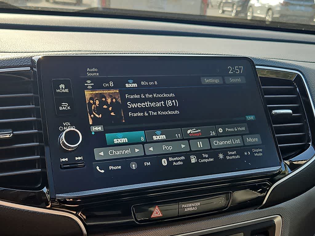 - Radio: 215-Watt Audio System w/7 Speakers -inc: subwoofer, 9" color touchscreen, Bluetooth® streaming audio, Speed-Sensitive Volume Compensation (SVC), wireless Apple CarPlay/Android Auto compatibility and 2.5A USB-A data port in front console, HondaLink, Select HondaLink features are complimentary, 36-month complimentary trials are available for security and remote packages, A subscription is required to continue HondaLink services after the trial ends