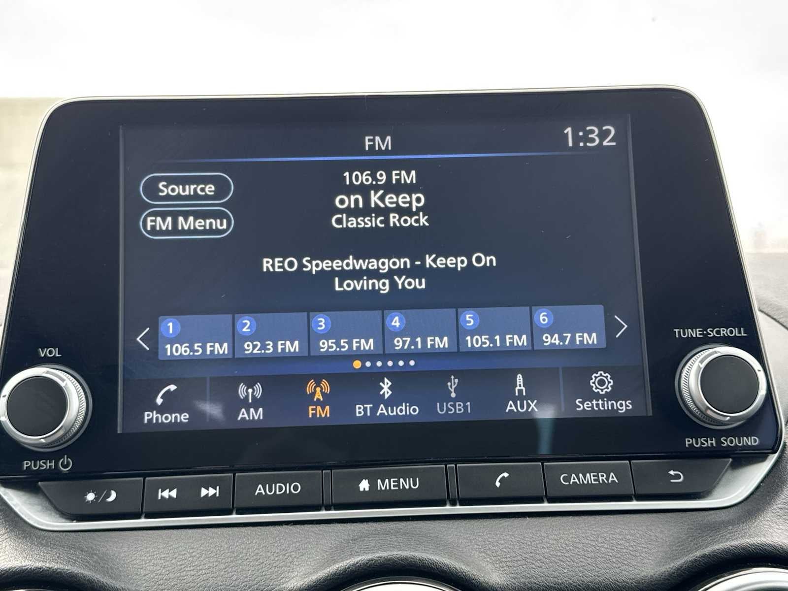 - Radio: AM/FM w/RDS/MP3/Aux-In -inc: 6 speakers plus 2 tweeters in A-pillar, 8" color display w/multi-touch control, streaming audio via Bluetooth®, Bluetooth® hands-free phone system, hands-free text messaging assistant, Siri eyes free, Google Assistant voice recognition w/Apple CarPlay and Android Auto, NissanConnect, (1) front USB connection port (type A), (1) additional front USB (type C) and (1) charge-only USB (type A) center console and SiriusXM radio w/advanced audio features