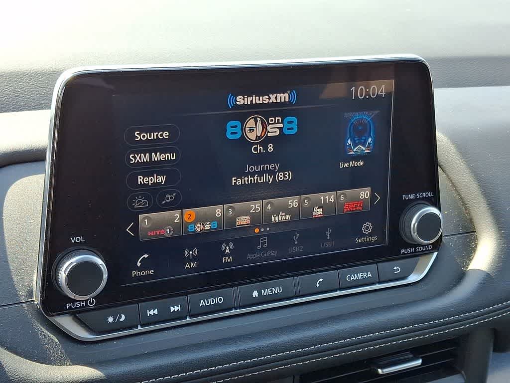 - NissanConnect w/6 Speakers -inc: 2 tweeters, Apple CarPlay, Android Auto, 8" color touch screen display, 2 front USB type-C, Wi-Fi hotspot and NissanConnect Services powered by SiriusXM
